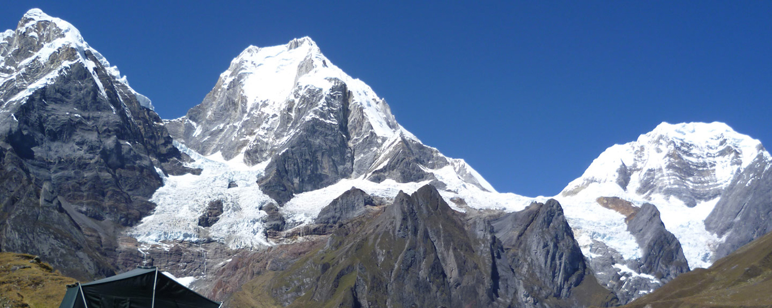 Después de un buen desayuno nos prepararemos para emprender la caminata más difícil del camino, recorreremos todo el sitio denominado Pampa Salkantay, para luego dirigirnos hacia el lado izquierdo del Nevado Umantay (5,917 m), que está junto al Nevado Salkantay («La Montaña Salvaje» en el idioma nativo de Quechua), donde llegaremos aproximadamente al medio dia. Después pasaremos por el punto más alto de todo el camino, el abra entre Salkantay y Umantay ubicado a los 4,650 m. (15,200 ft). En este sitio observaremos los nevados y glaciares del Salkantay tambien apreciamos la magnífica vista de la caída de las avalanchas de nieve para luego descender a través de ceja de selva hasta llegar Challway, nuestro próximo campamento.